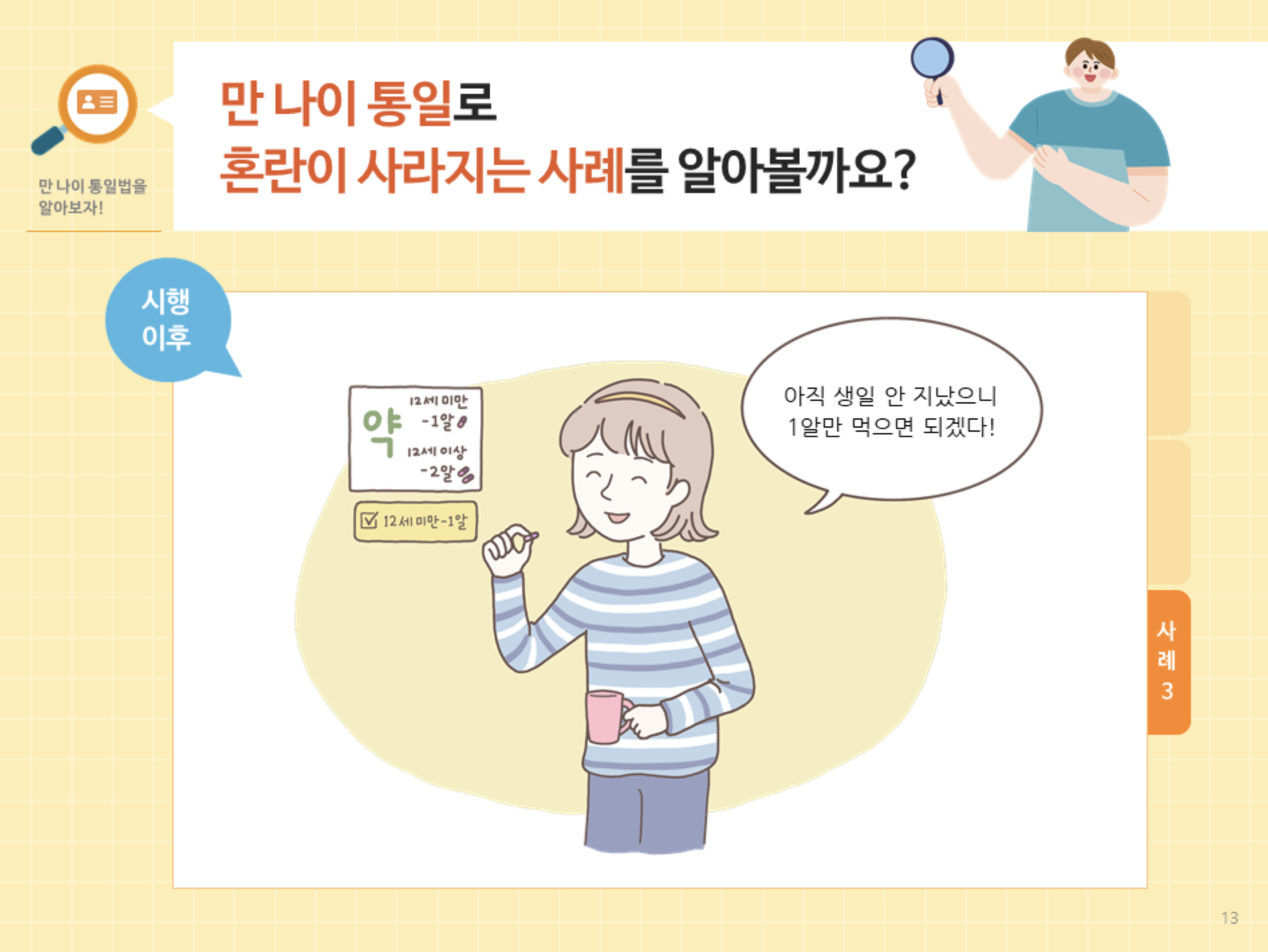 이번 정부에서 만 나이 통일법이 시행을 한 가장 큰 이유가 나이로 인하여 혼란을 초래하는 부분들을 사라지게 하는 것이 가장 큰 목적이라고 한다. 이와 관련하여 정부에서는 아래와 같이 가이드라인을 주고 있다.