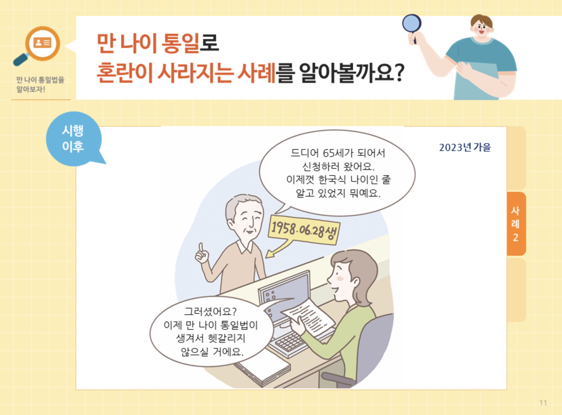 정부 보조금이나 여러가지 서류를 신청하러 갈 때 만 나이로 통일되면서 혼란이 사라지게 된다.